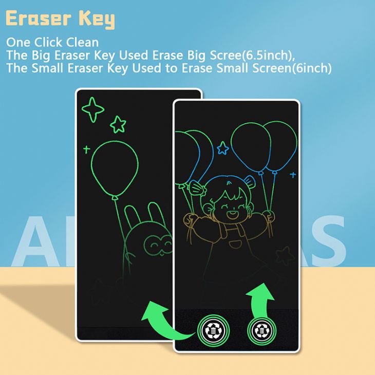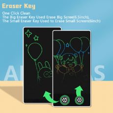 Two-in-one design, buy one you get two. This 6.5-inch double side full-screen LCD handwriting tablet is portable and solve problems for mothers. Mini size and light weight design make it easy to take with you and make the accompany longer.